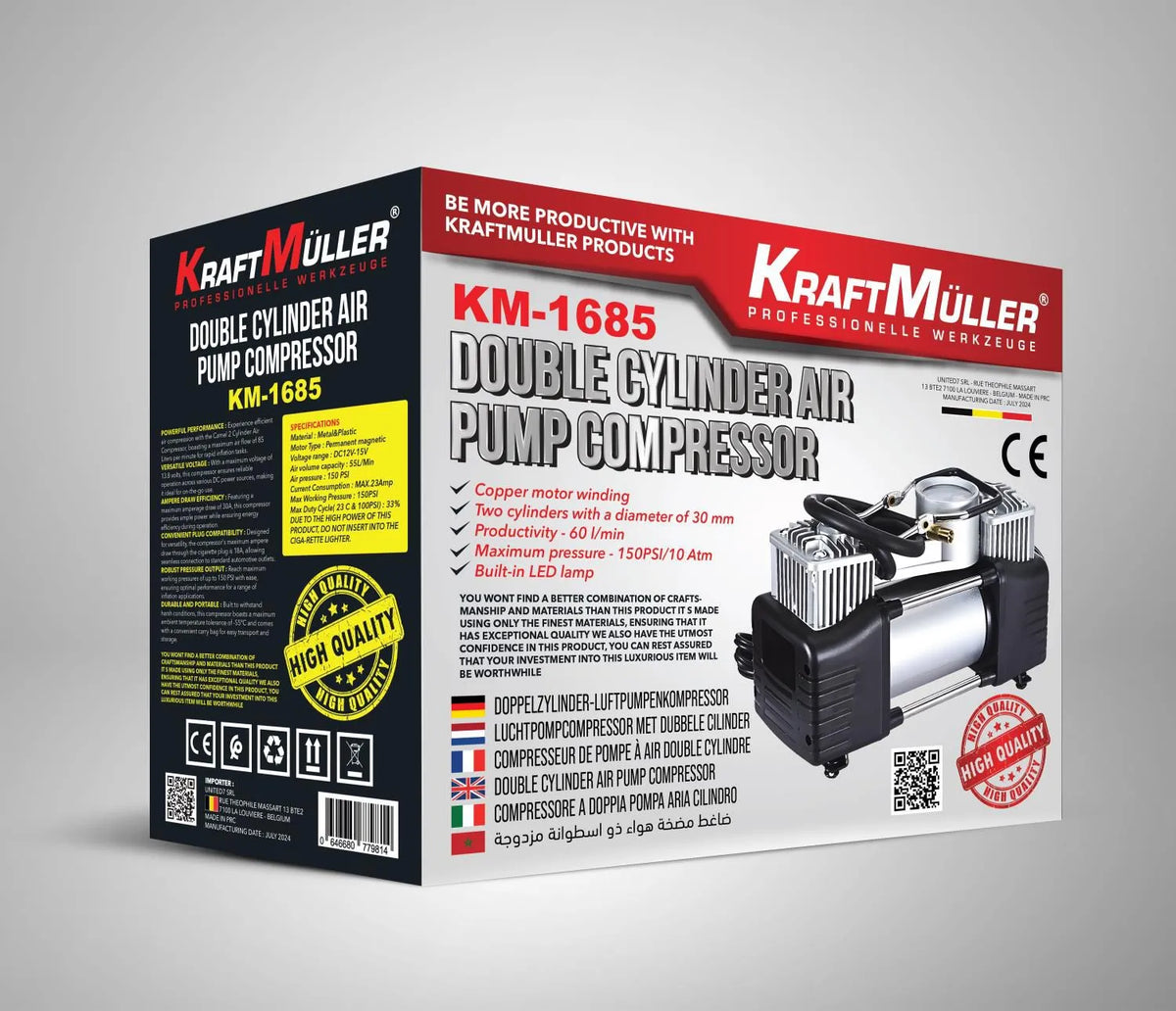 Compresor portátil de dos cilindros Kraftmuller de 12 V y 150 PSI