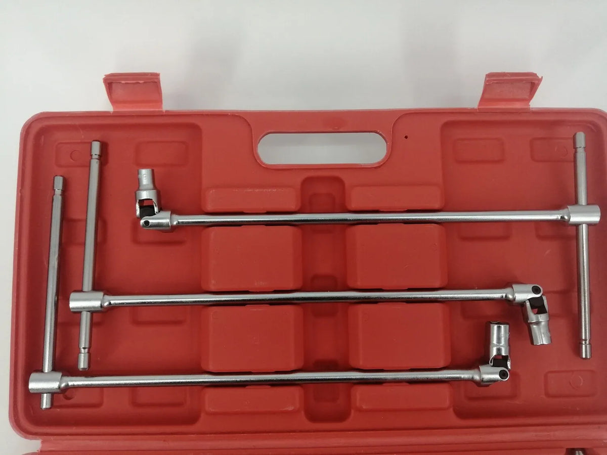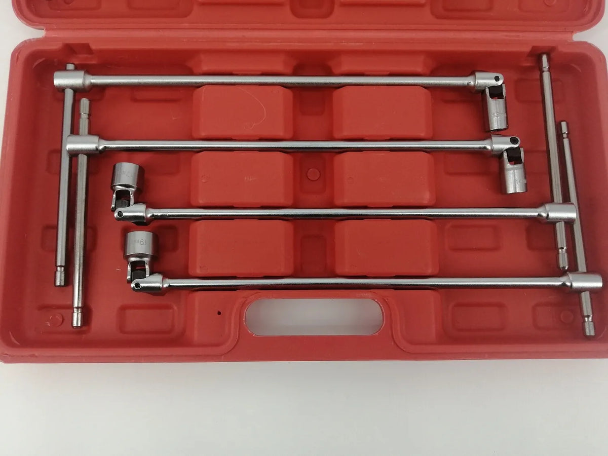 Juego de 7 llaves articuladas Kraftmuller con mango en T y junta universal "larga" para extraer bujías de encendido y bujías incandescentes.